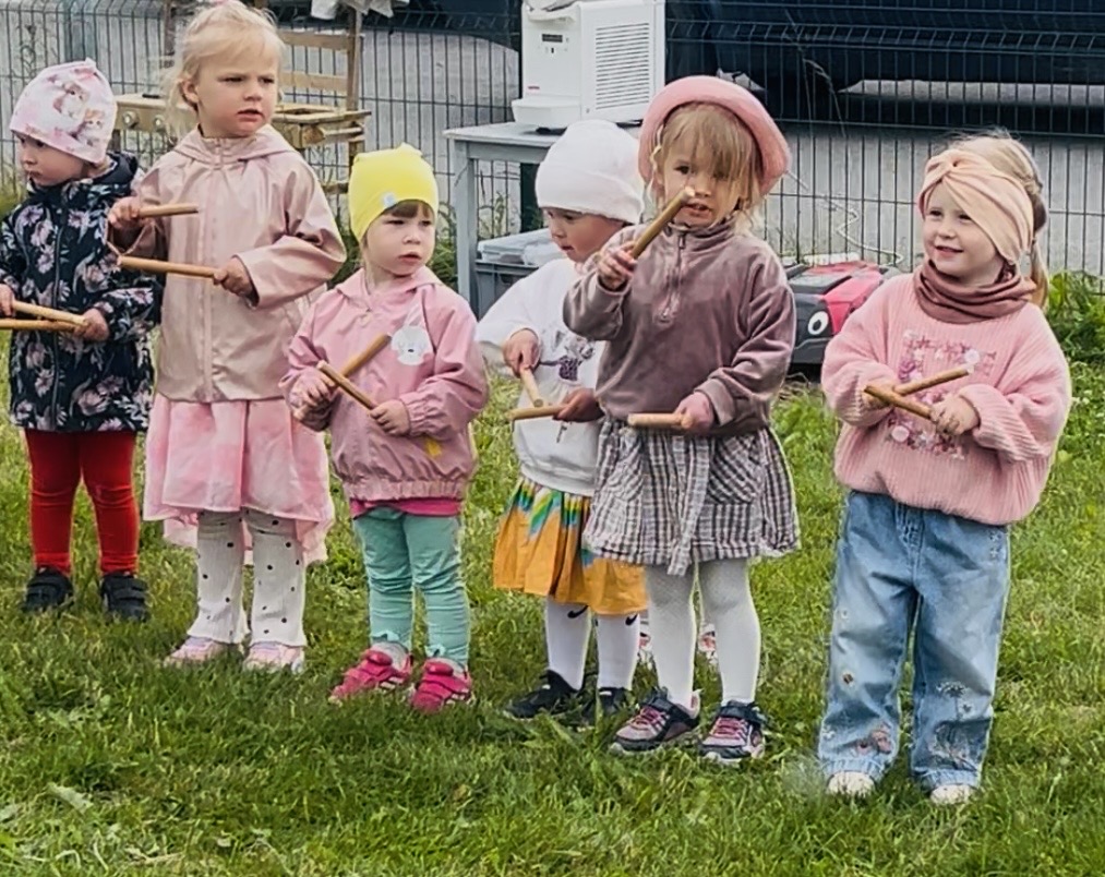 Laulame igapäevaselt kuu teemadega seonduvaid laule hommikuringides. Laul käib meie igapäevatoimingute juurde- laulame riietudes, kiigel, magama jäämisel jne. Kord nädalas toimuvad meil laulu- ja liikumistunnid muusikaõpetajaga. Lapsed saavad kaasa mängida erinevate muusikainstrumentidega. Igal hooajal on meil neli pidu, kus lapsed esitavad õpitud laule lapsevanematele.